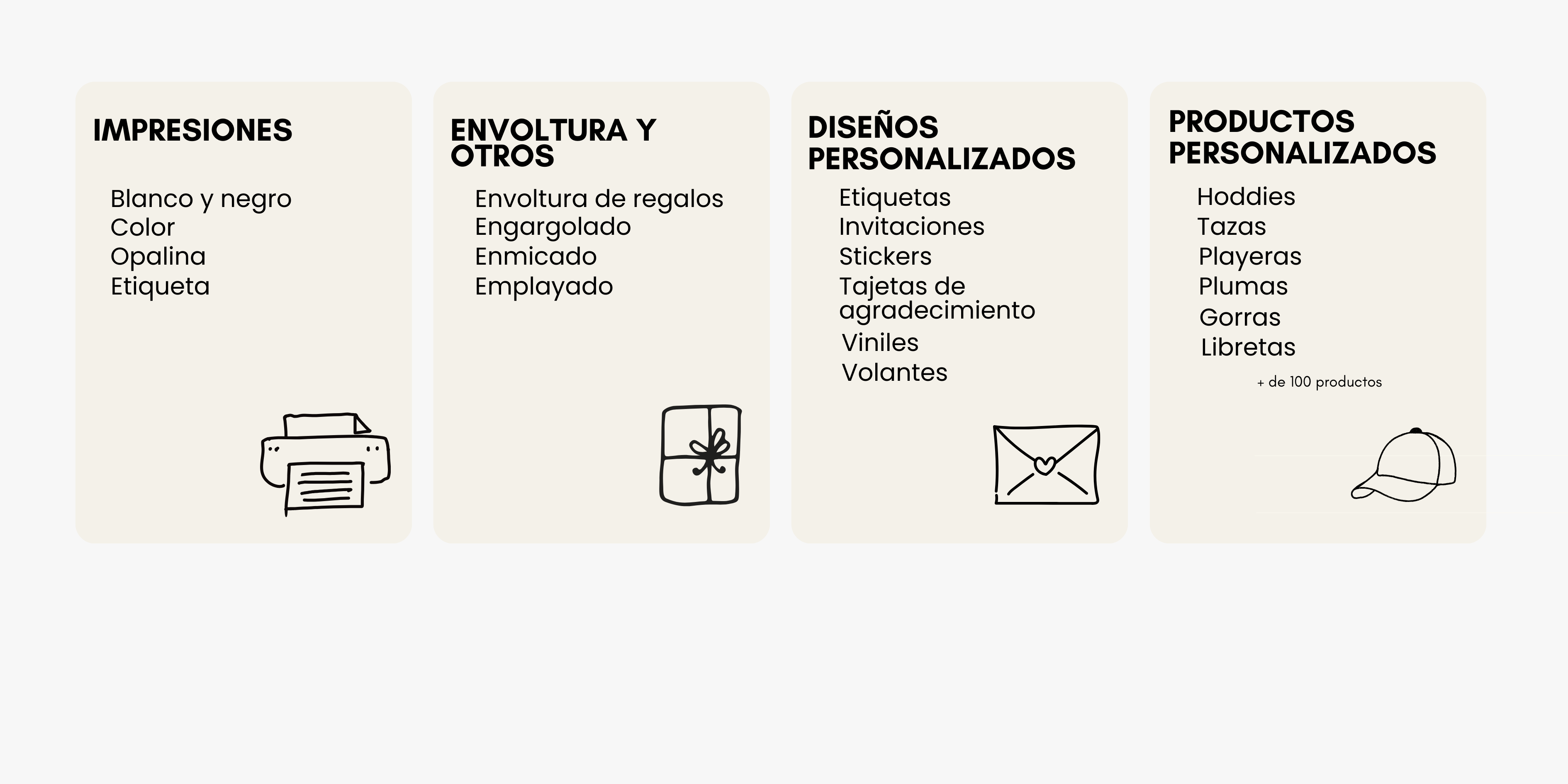 Ofrecemos soluciones que hacen tu vida más fácil. Ya sea que necesites impresiones rápidas, etiquetas personalizadas, encuadernaciones profesionales o copias de alta calidad, estamos aquí para ayudarte